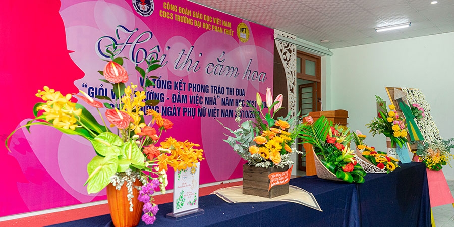 Vào sáng ngày 20/10/2022 CĐCS trường Đại học Phan Thiết tổ chức Hội thi cắm hoa với chủ đề “Vươn xa Phụ nữ Việt Nam” và tổng kết phong trào thi đua “Giỏi việc trường – Đảm việc nhà” năm học 2021 -2022 để chào mừng ngày Phụ nữ Việt Nam 20/10.